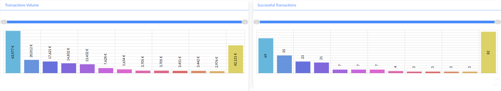 - Successful transactions: Shows the number of successful transactions by payment processor.