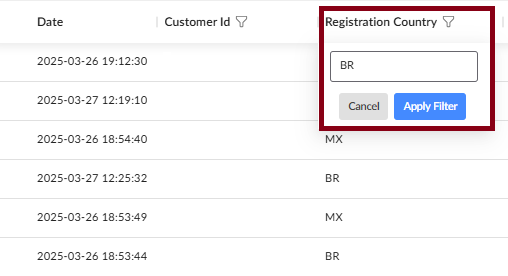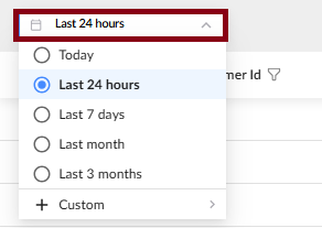 - Date: The default date is set to "today." Clicking the filter opens a calendar, allowing you to select a date range by choosing a start ("from") and end ("to") date.