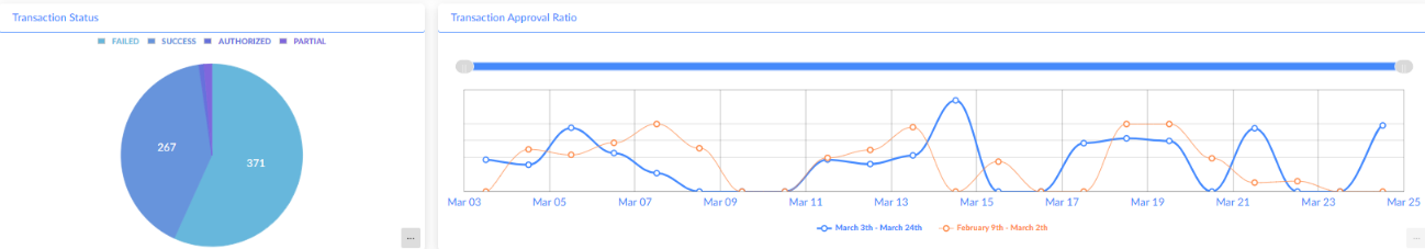 - Transaction approval ratio: Two lines representing the approval ratio for each date.