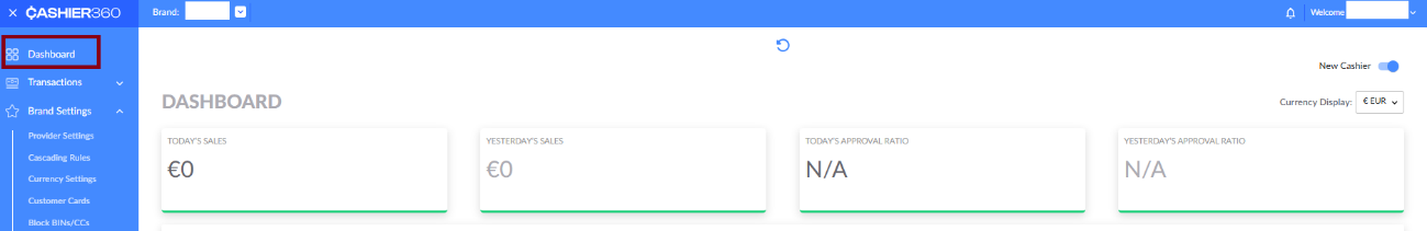The Cashier's dashboard is an information management tool that visually tracks, analyzes, and displays key performance indicators (KPIs), metrics, and important data points for each brand, helping to measure successes and identify areas for improvement.
