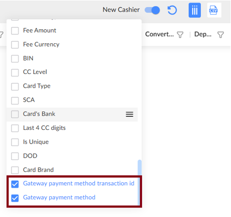 The fields Gateway Payment Method Transaction ID and Gateway Payment Method currently function only for LatamCashier.