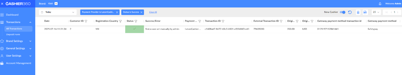 The Withdrawal Form for the B2B Cashier is available in CRM360, allowing back-office users to create and process customer payout requests.